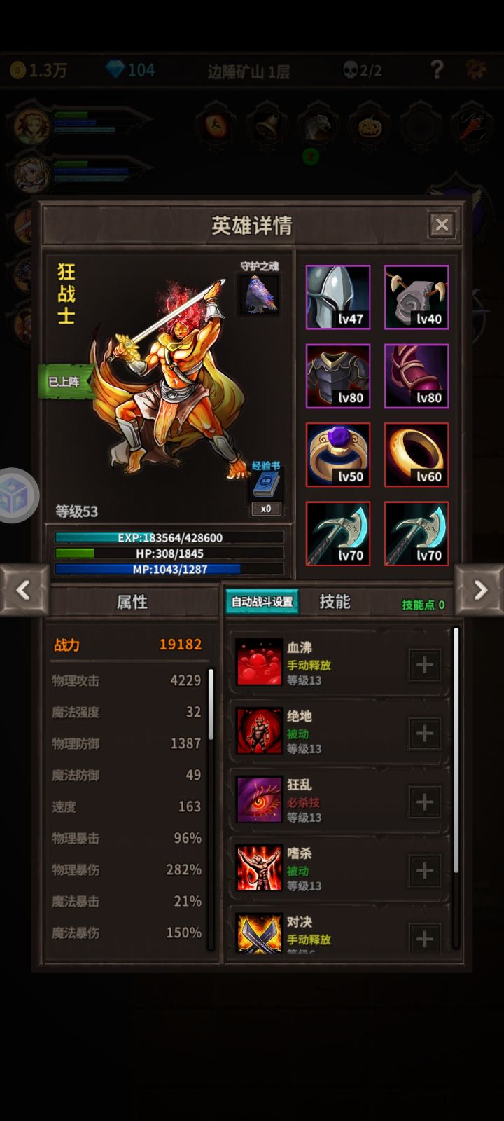 3. 复活石碑必带。钻石英雄购买顺序还是建议狂战王女排前面,再考虑赏金,因为50层开始小怪会打后排,需要单上狂战一路杀过去,这时候最好有龙血。