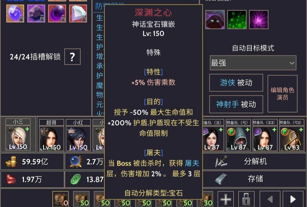 组合达成之后几乎不死,除非极个别状况被挂上状态,比如灼烧啊中毒啊流血啊。问题在于目的和抵抗都是胸部附魔,所以就需要宝石-深渊之心(自带随机两个附魔效果,150满级之后可以获得)