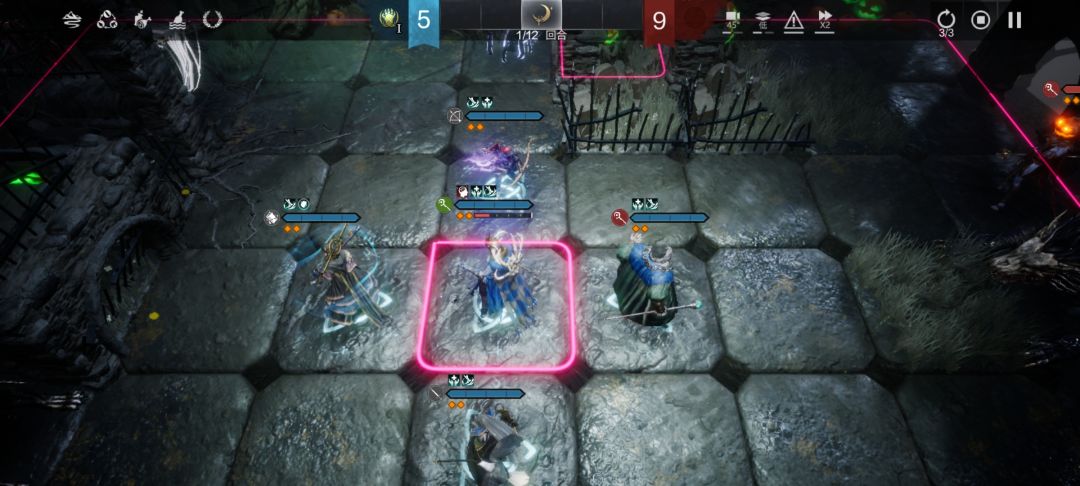 占位如图,第一回合毒法先手二技能打雷德蒙,赌火胖2技能秒雷德蒙90%血,没成功就回退或重开,之后伯劳(可用其他远程代替)加夜莺再动火胖打掉最后10%