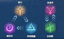 5、按能量类型分为:科技能量11张、混沌力10张、神力13张、古异能12张、合成力7张,不同能量源之间存在相克关系;