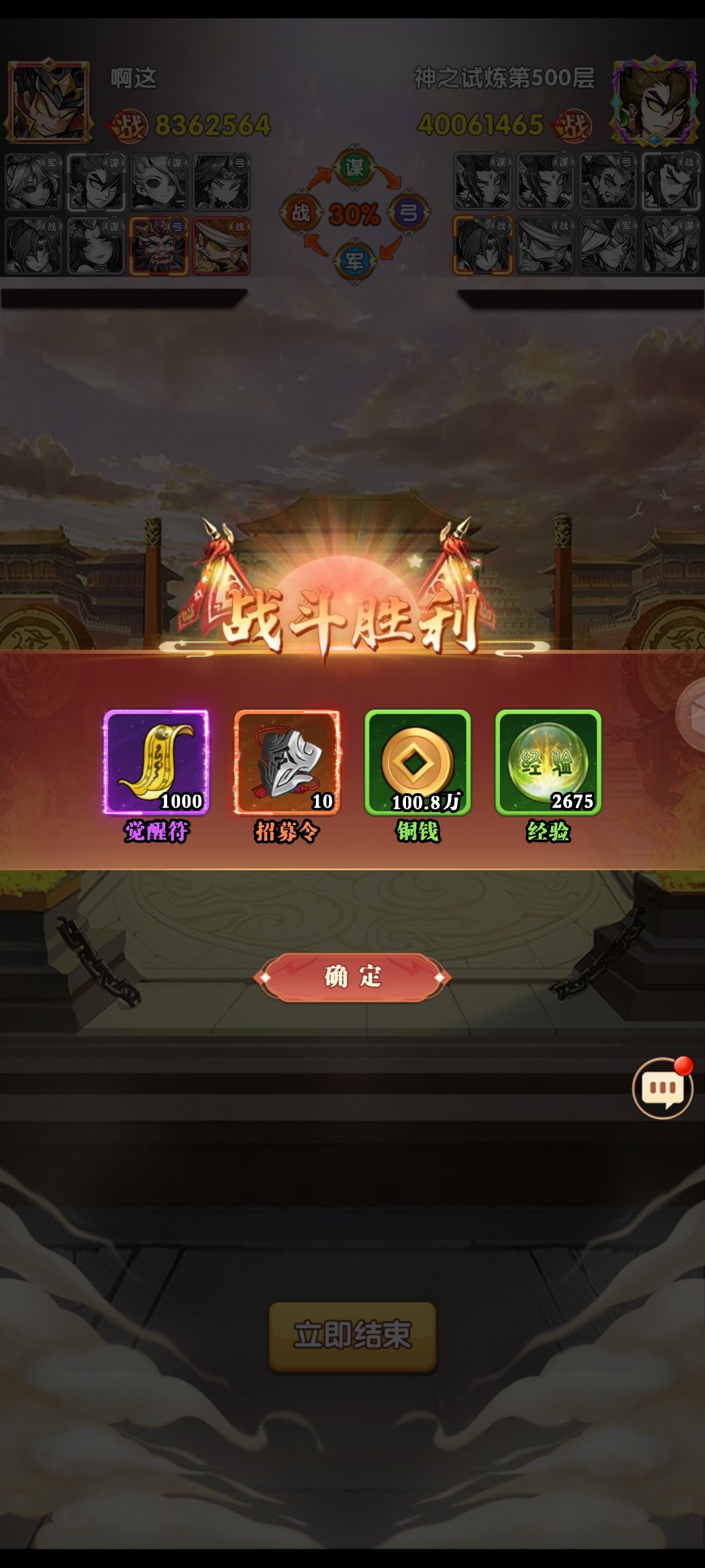 发了这么多图,你会发现,我总体战力800万,董卓一个人就占400万,而这样的一个董卓配合阵容就可以通关神之试炼了(卡关的时候多试两次,赌董卓的暴击)。