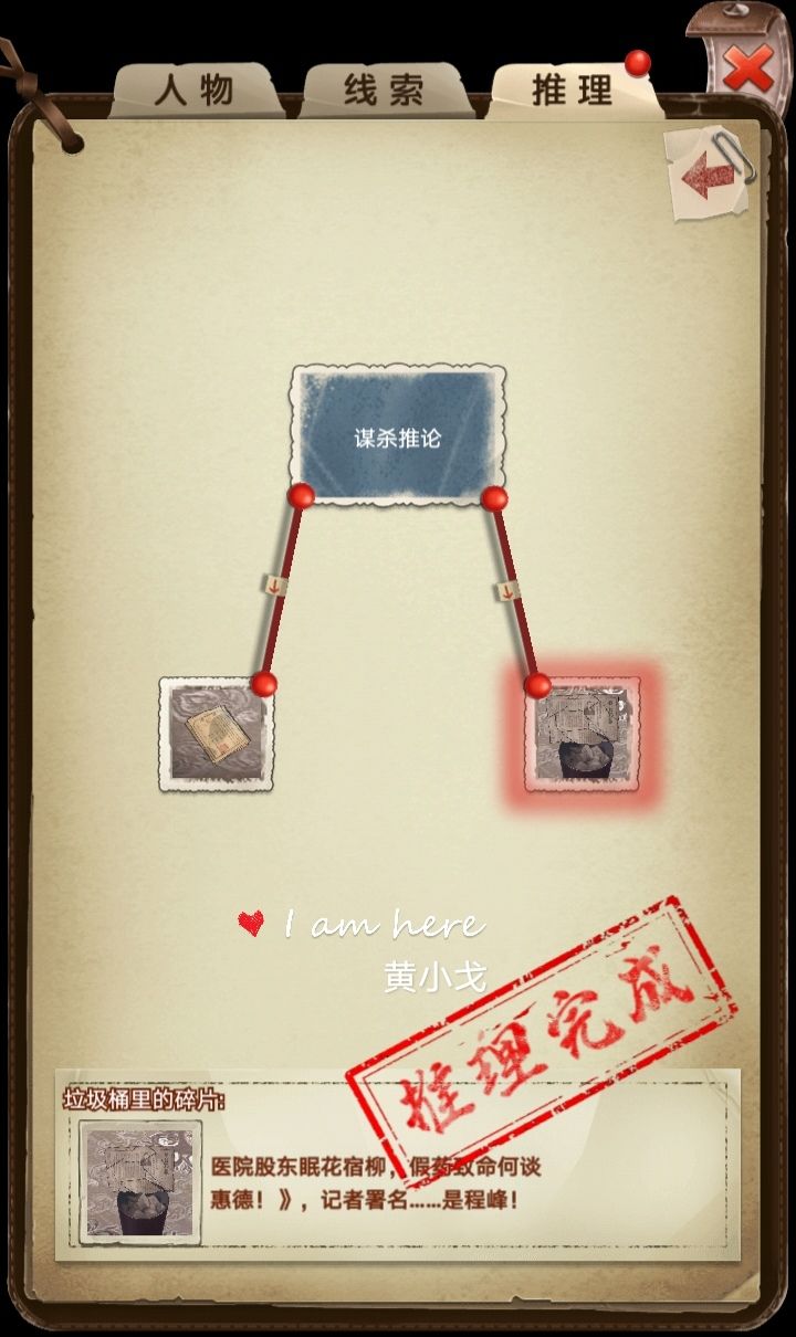 谋杀推论→【程峰的欠条】、【垃圾桶里的碎片】