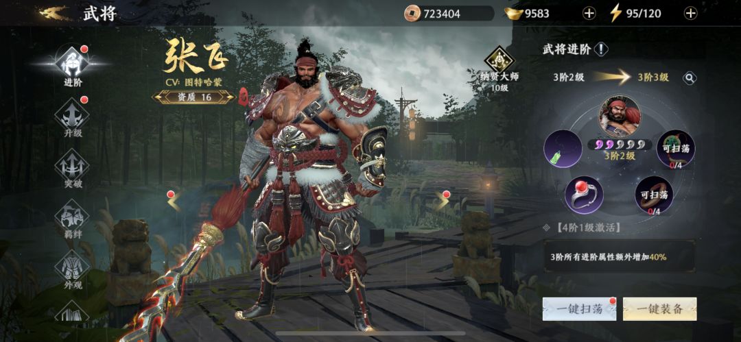 这里简单说一点是新手刚刚玩的时候,初始英雄就有刘备,张飞需要靠抽奖获得,其实方法很简单,开始会送给各位将军们大量的英雄招募卷,提供给您抽奖使用,张飞也是在红将里面输出比较爆表的英雄,有这“小吕布”的称号,再配上大哥刘备的续航能力岂不是推图永动机的存在吗?后面抽到红将可以把刘备换下来,至少可以帮您度过前期的一小部分的环节,因为这是个养成类型的游戏,需要不断的积累武将来提升的你战斗力,张飞是可以用到中期的武将,在PVE和PVP里面都有不俗的表现。