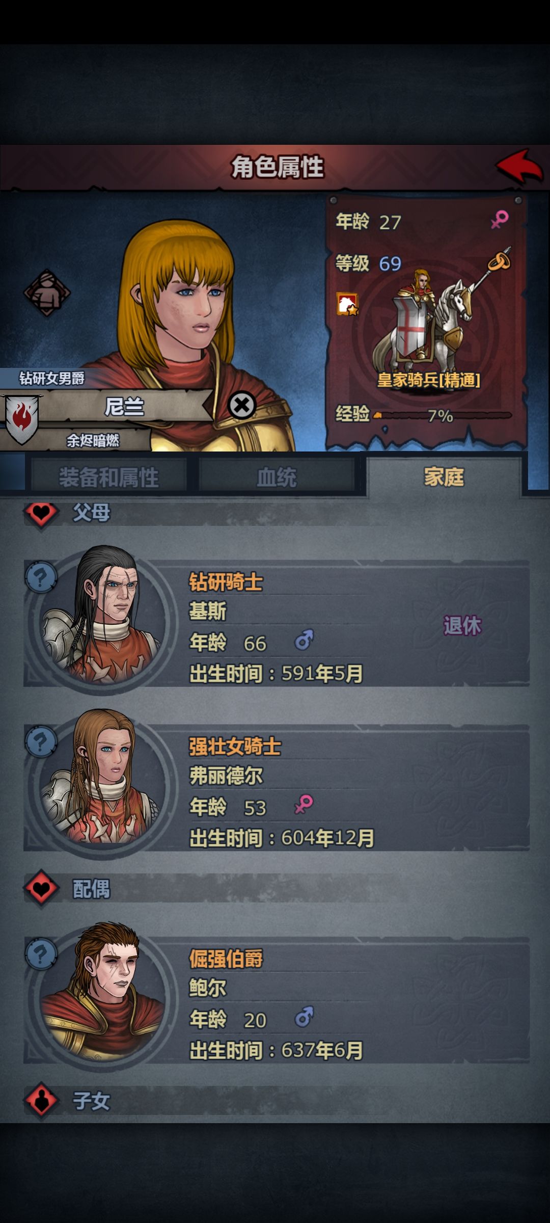 大德这块的人物也很简单,感知有B就行,甚至C也无所谓,主角老婆选星引,不知道是官方设定还是怎样,主角的孩子一般属性非常平均,哪怕有个12精灵血,也是C感C意,而且容易遗传迷信和勇敢,非常适合大德,运气好点,单靠主角孩子三个大德就有了,基斯和光头的孩子也很容易出B感,实在脸黑啥都没有,去酒馆随便找一下。