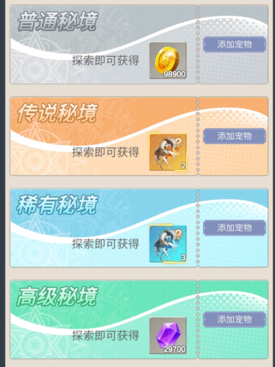 宠物秘境里头的派遣那里不是橙色就好。普通给的一样花费的红钻却很少,在宠物秘境派遣那好好琢磨琢磨。宠物等级一定记得留一个高等级。