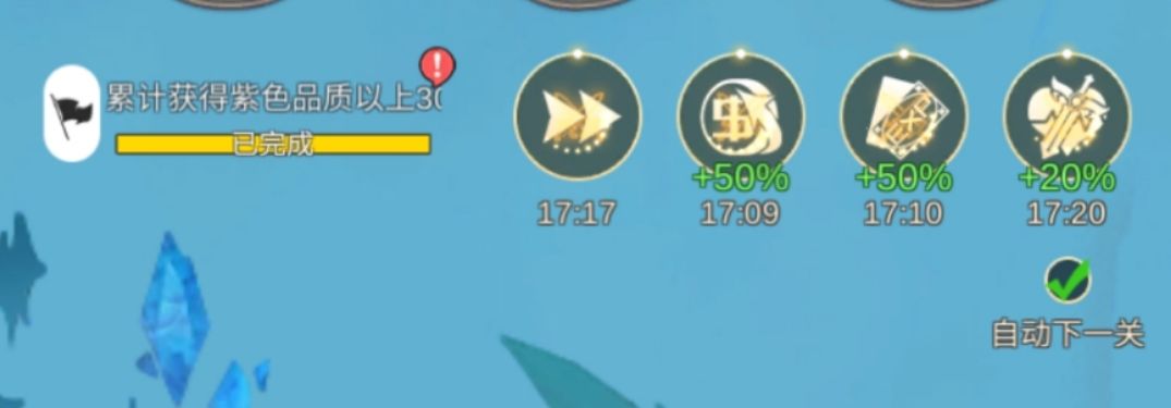 开始的时候加速游戏,加倍经验,等四个buff全用红钻打开。这里看广告收益很低。注意这里只有在线有效。