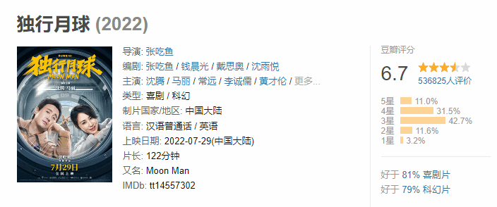 沈腾马丽《独行月球》最终票房31亿 打破17项影史纪