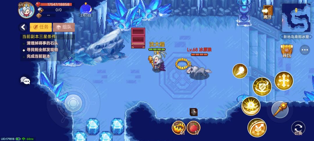 新地岛南部冰窟:狼4、矿蜗牛4、岩蛙4、眼睛蛇4、食人花4、魔岩石人4