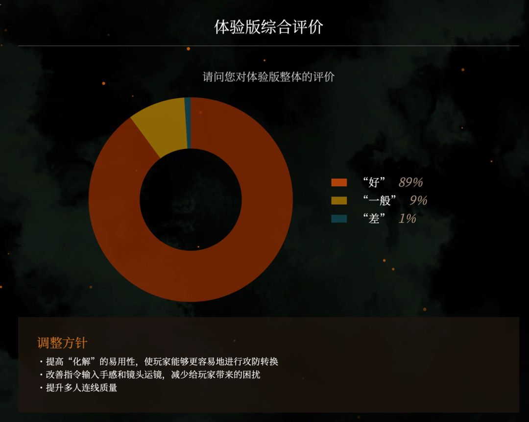 对战斗、画面、音效、关卡配置・难易度、教学关卡、UI、在线多人模式、角色創建等方面的问卷结果可查看以下图片: