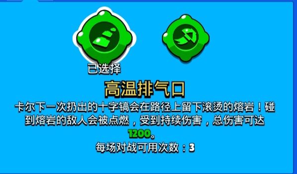 卡尔下次普工扔出的镐子,将会在经过的道路线留下火焰,若地人踩到火焰将会被点燃,受到每秒300的持续伤害一共持续4秒,也就是可以达到1200伤害
