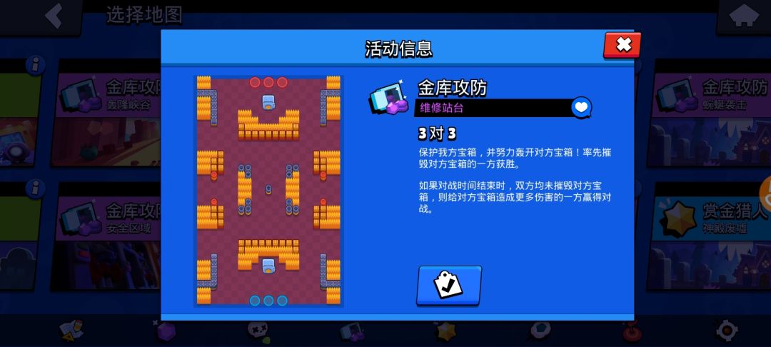 卡尔在这张图里并不是很强势,因为大部分金库都不会离墙太近,所以打不出太高伤害,大招虽然能打出8400伤害,但如果和其他角色的伤害一比就并不是高了(科尔特,达里尔),然后因为卡尔普攻伤害并不高(因为大部分人都无法来回都打中),卡尔他的防守能力也不是很强,尤其是一些肉过来(公牛、达里尔),卡尔是真的没办法守住,所以总结就是在这个模式里你用卡尔,有用,但没有完全有用,你还不如用其他角色,比如妮塔、达里尔、科尔特等,这哪一个都比卡尔更好打。强度:⭐⭐(两星)