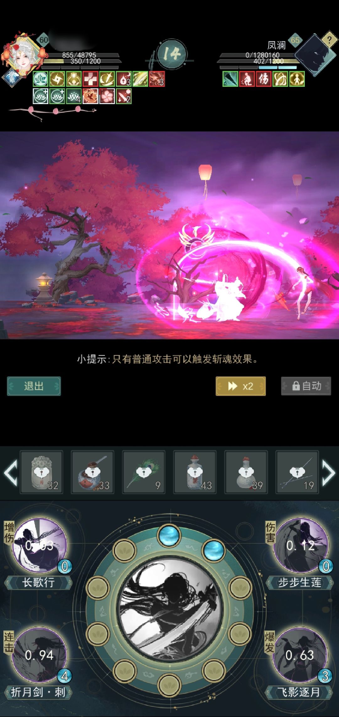 依旧和我以前发帖打秋水何思还有东昆一样的轴,戏称“5回合剑法”,即不看红字伤害,全程靠白字百分比扣血,5回合可以扣光。