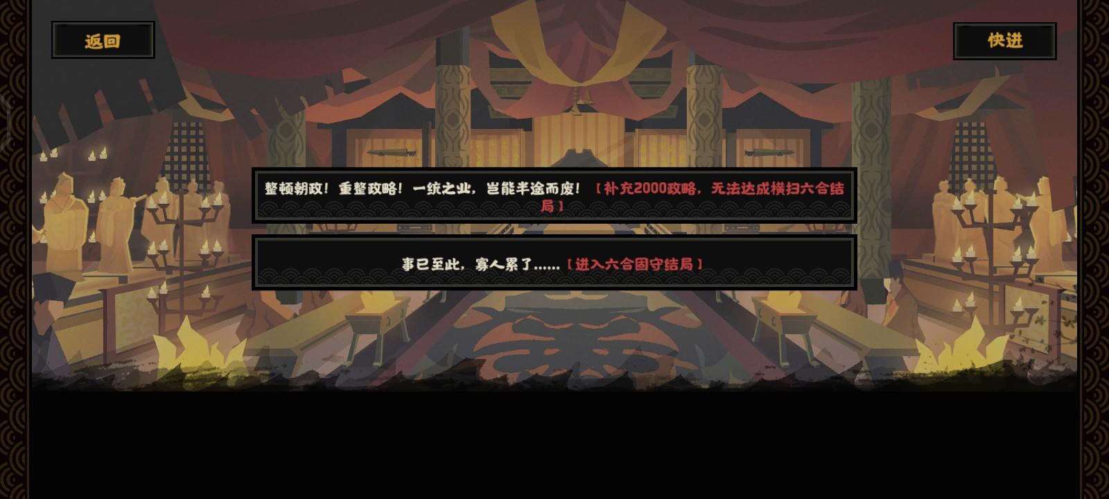 ,这里有一个特性,补充2000政略后,如果是统一结局则是步步为营(这个结局属于臣服结局,无法席卷),但是如果打的是诸侯咸服结局,则是可以席卷的!!!