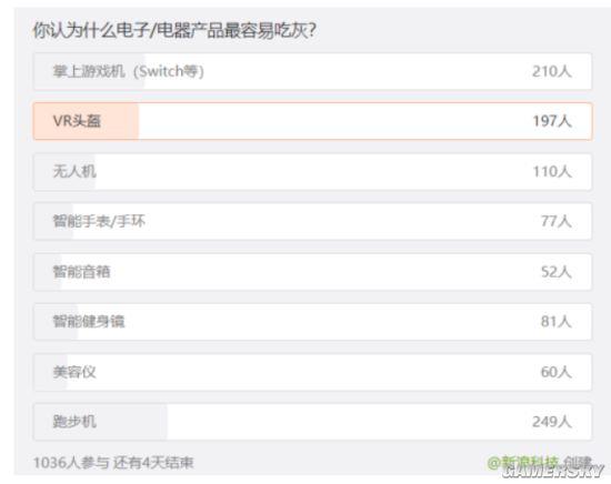 第二名为掌上游戏机(Switch等),投该选项的人数为210人;