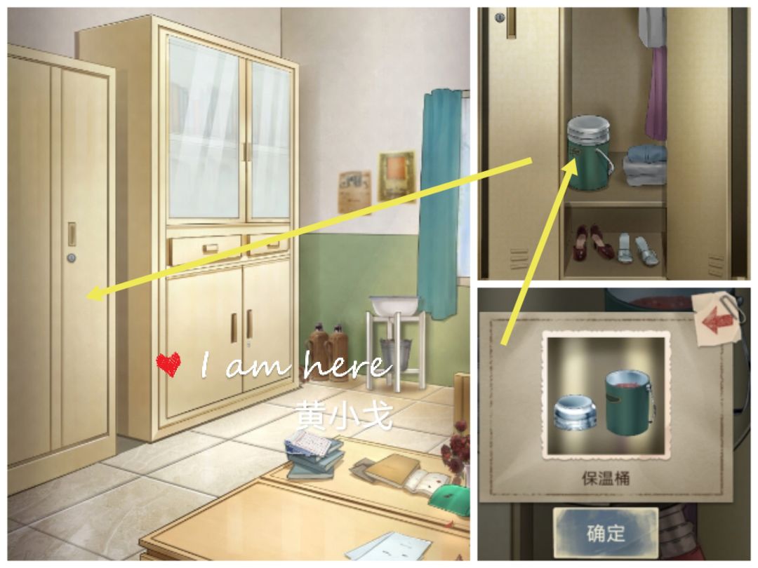 2.柜子:【氯化钾药瓶】→结晶生理盐水、【好姐妹的合影】、【一尊摆件】