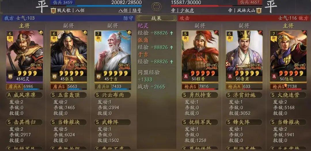 PS:由于战法有限,这些战法并不是最强搭配,张角携带太平,于吉带草船借箭或者刮骨疗毒效果会更好!