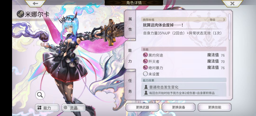 电锯妹 米娜尔卡的主要技能只有两个,80冥技能位对其意义不大,只需要120冥徽章位,200冥灵晶位