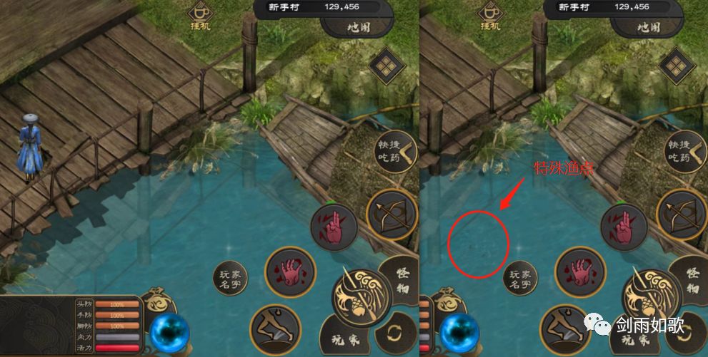 重要!请严格根据自己的能力以及所能承受的风险来选择渔具、鱼饵,例如高级鱼饵上极品鱼的概率更高,但相对应的钓鱼难度也更难,初学者建议在竹林附近找竹子砍伐,之后找风兄兑换翠竹鱼竿,再找铁匠购买蚯蚓来练手!