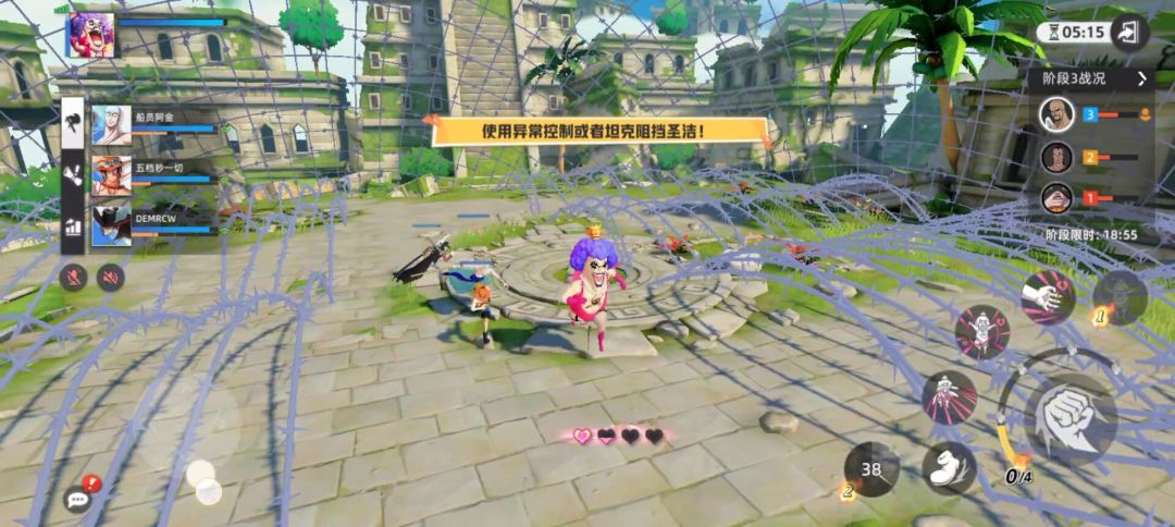点名攻击两两一起分担伤害,技能伤害也不高也可以硬吃,打赢后打主BOSS的队获得BUFF增益