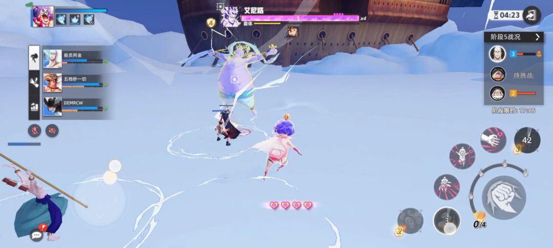其中一队为主力队,主力队需要对抗最终BOSS艾尼路,所以最好派遣三个战力最高的大腿当主力输出,然后一个支援角色要回血回能.推荐人妖王伊万科夫或者乔巴。女帝也可以当辅助但是因为女帝没回血,低战力开荒的时候及其考验输出操作,容错率极低