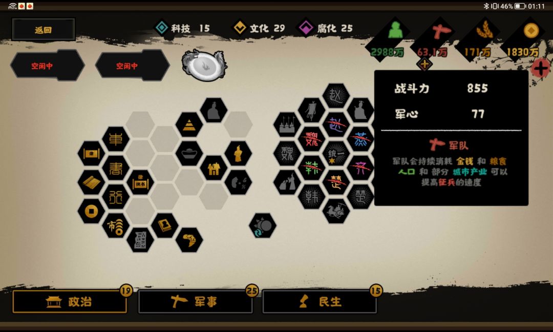 还有就是多点一点科技点,用水利,能获得大量资源,其他的,只要政略有多随你点。