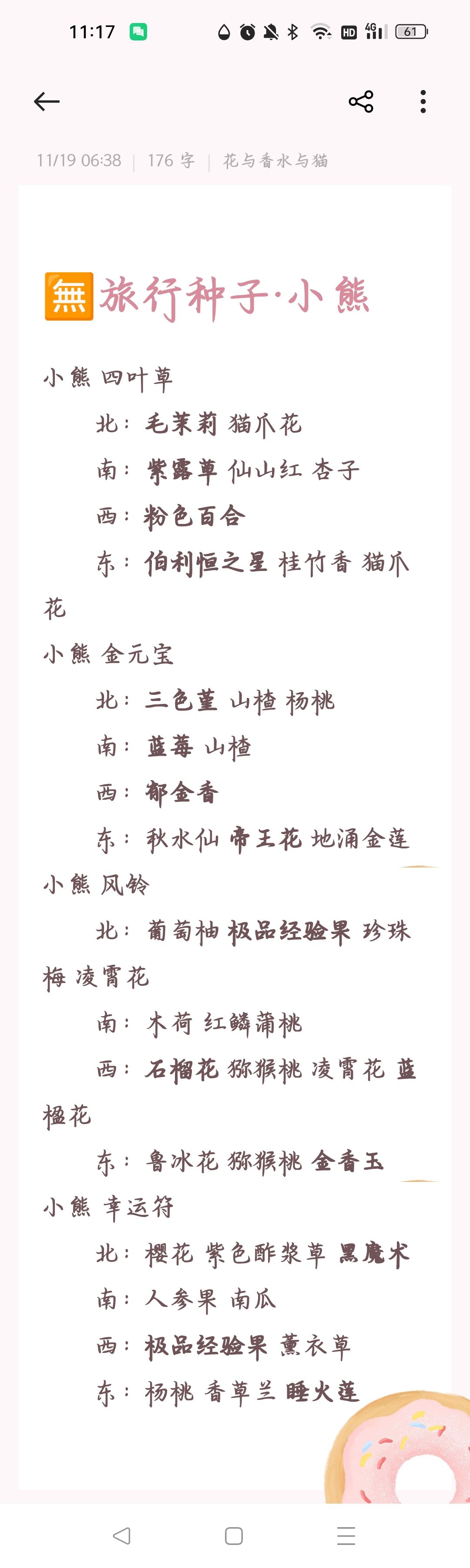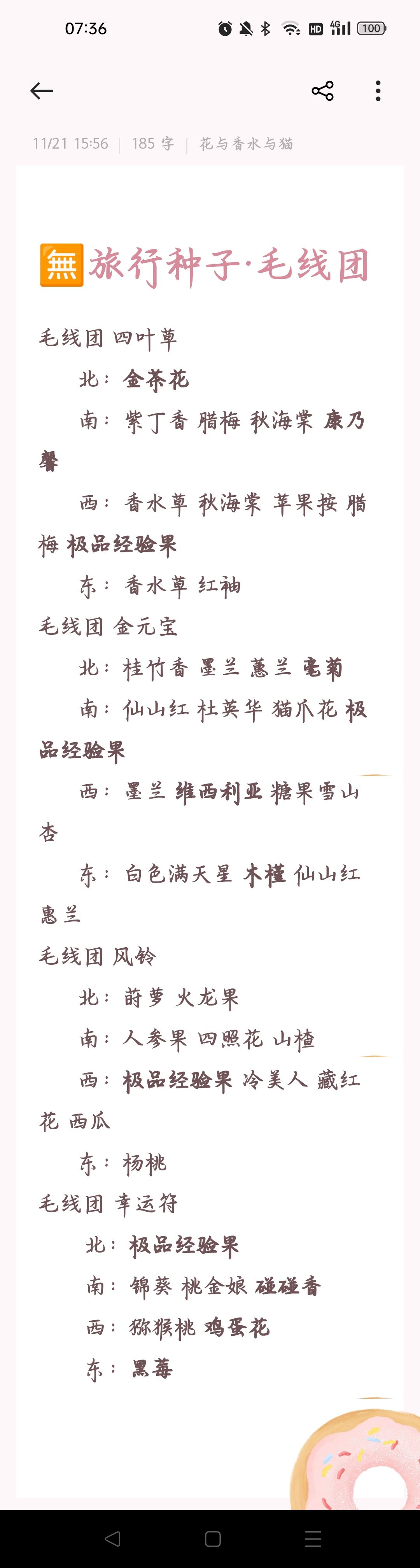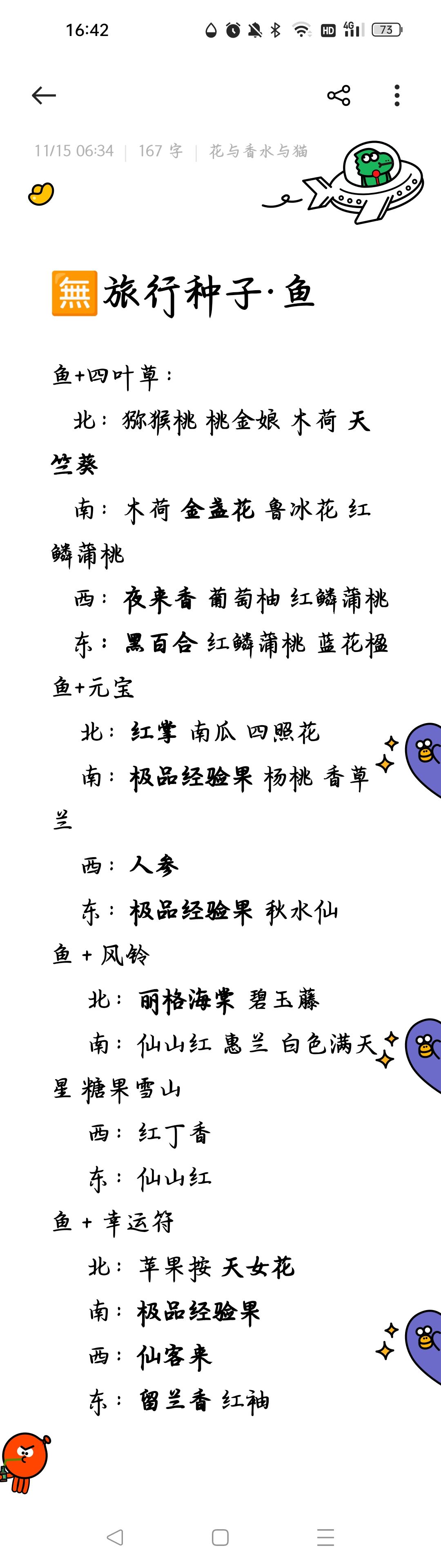记录旅行得来的紫色和金色种子(金色种子用粗体字号标出)