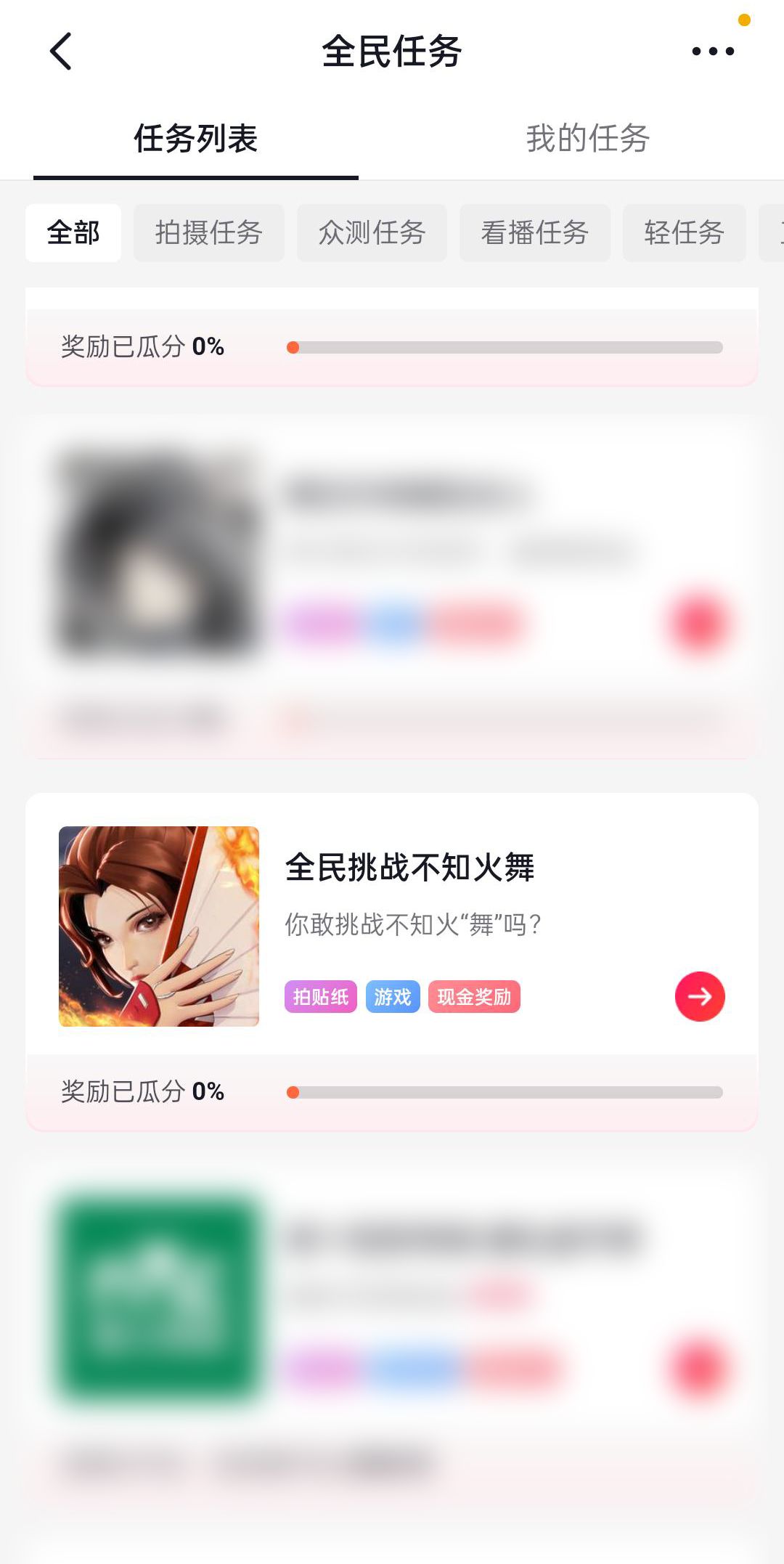 前往抖音搜索全民挑战,点击下方全民任务板块