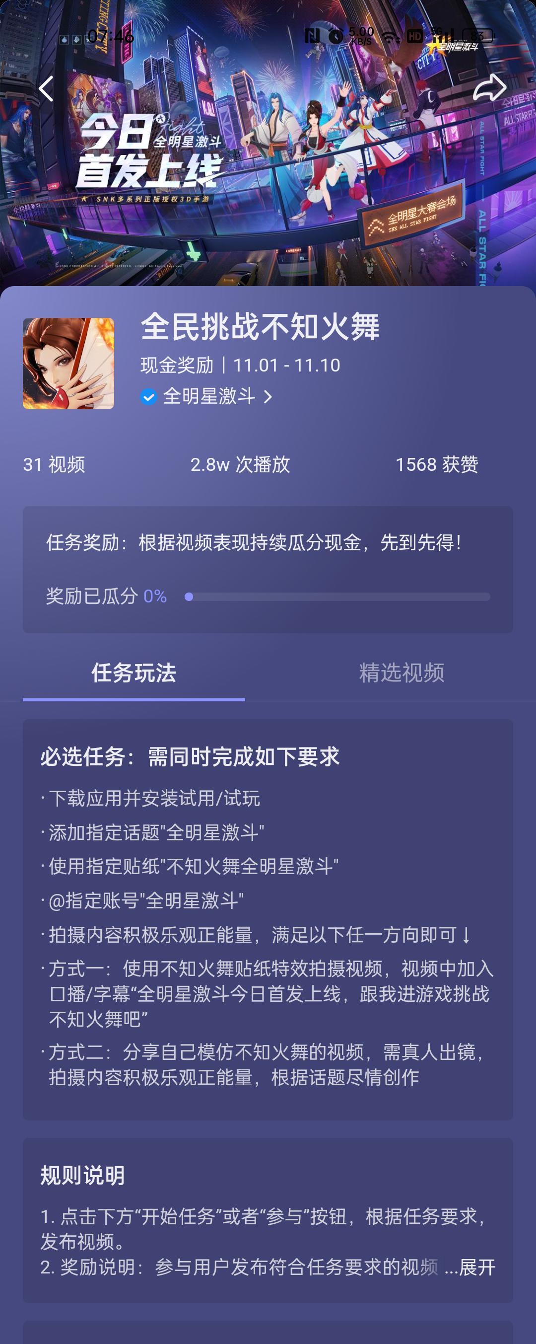 ★ 方式二:分享自己模仿不知火舞的视频,需真人出镜,拍摄内容积极乐观正能量,根据话题尽情创作