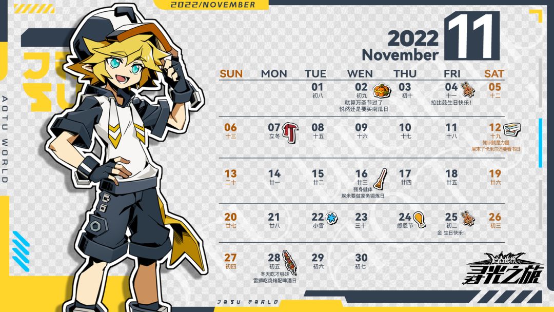 9022捎来主办方最新设计的十一月月历!本月立冬,别忘了添衣哦!