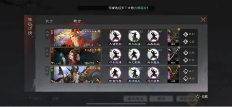 前几回合内,大乔在形兵加持下有伤害并且自带回复;而前锋严颜配合形兵的加成后,坦度非常高;加上大营孙权的保护和解控,令这个队伍又肉又输出。