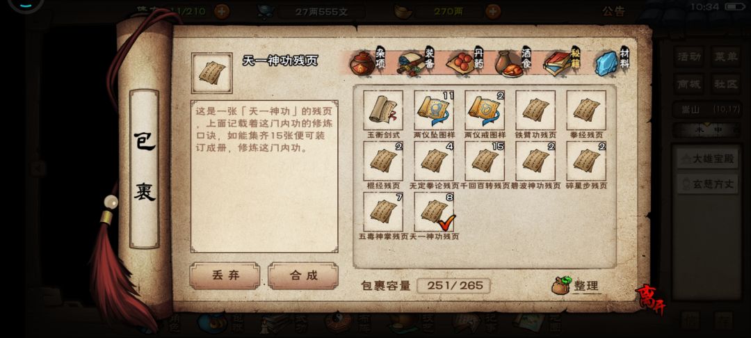 剩下太虚和易筋经都在8升9(9升10需要28w阅历)目前是需要56w阅历。