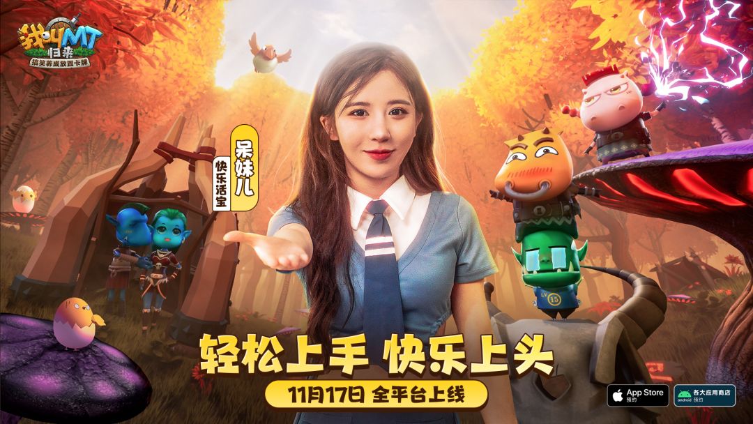 轻松上手 快乐上头!由龙图游戏开发,同名动画正版授权,搞笑养成放置卡牌手游《我叫MT:归来》将于11月17日上线全平台,歌手冯提莫与人气主播呆妹儿化身“快乐甜心”与“快乐活宝”,邀你一同开启快乐的冒险!