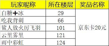 恭喜以上5位幸运玩家,奖励将在7个工作日内发放,如果超过11月16日不来领取奖品将会视为自动放弃哦