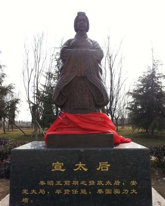 宣太后主政期间为一举消灭义渠国这个西部大患宣太后在义渠王来秦朝贺时以美人计拿下义渠王,并与之周旋最终将其斩杀于甘泉宫于是秦国趁机发兵攻灭了义渠从此再无西部隐患