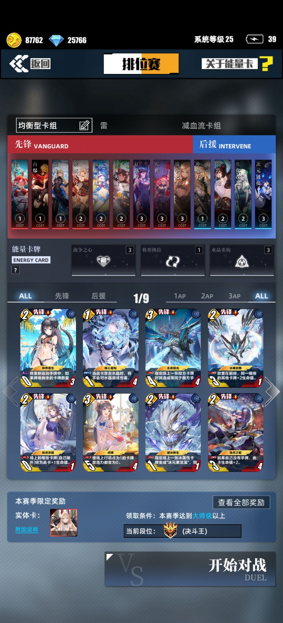 一、卡组思路:1.敌快我慢,敌慢我快(判断对面卡组方法:进入战斗查看对面技能,召唤一张xx为慢速卡组)。战争之心和水晶重构都是三点能量,面对快攻时优先回血,面对慢速卡组优先战争之心,对面进攻性很差,1血健康,0血不慌。