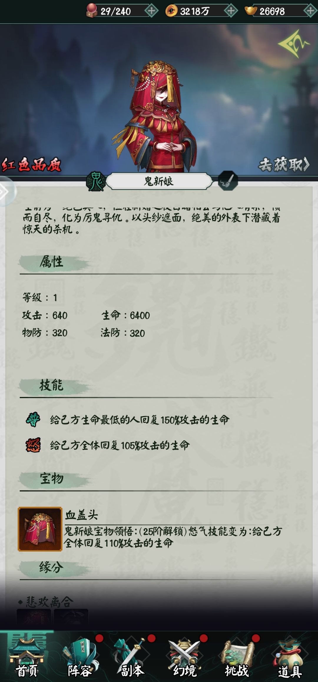 鬼新娘除了突破天赋,属性技能与其他阵营相同