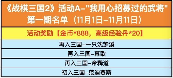 🎁活动A、我用心招募过的武将(达成必100%得招将礼包)