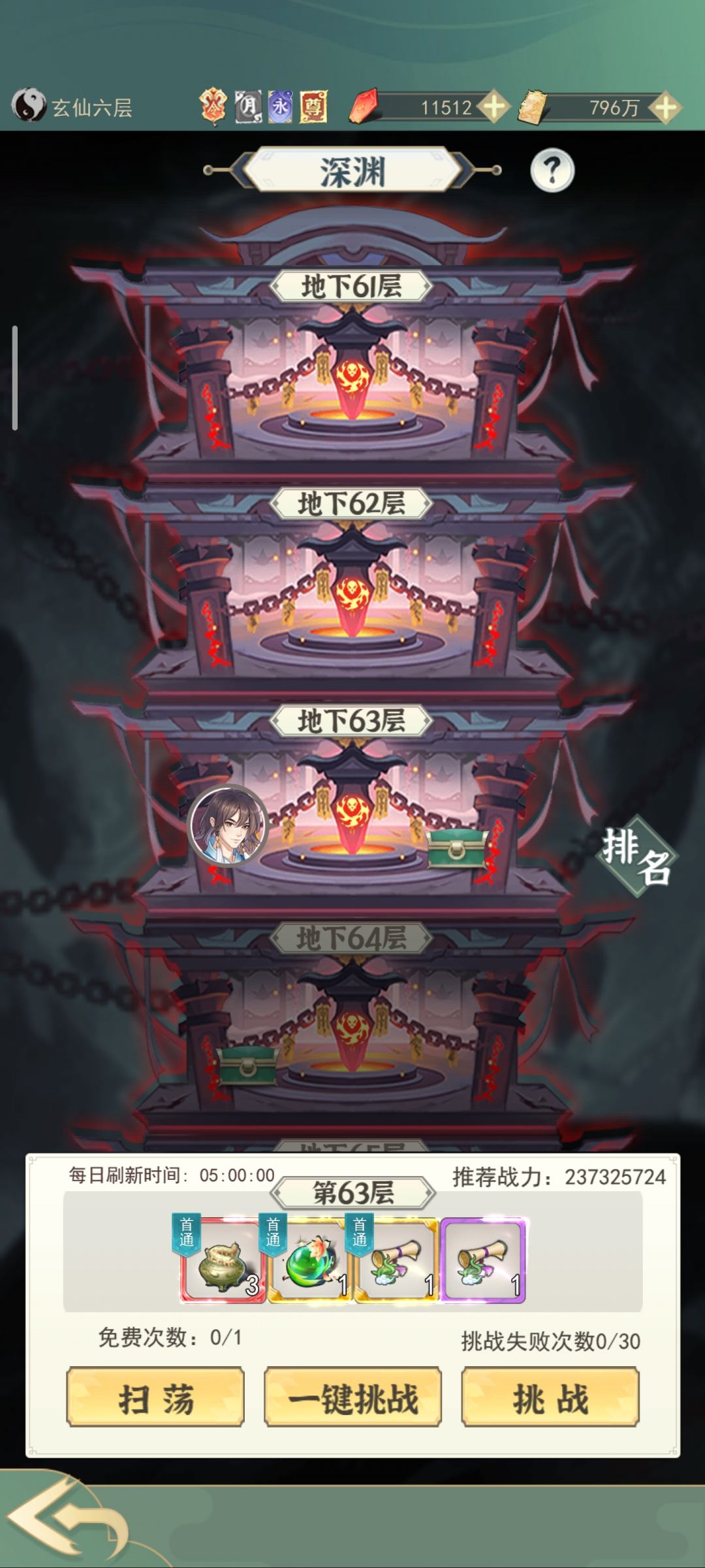 刚开深渊的时候一般都会打不过第一层,不要着急这很正常,过一段时间就能打过了,我的建议是深渊层数可以稍微高一点再用扫荡卷,资源最大化嘛。