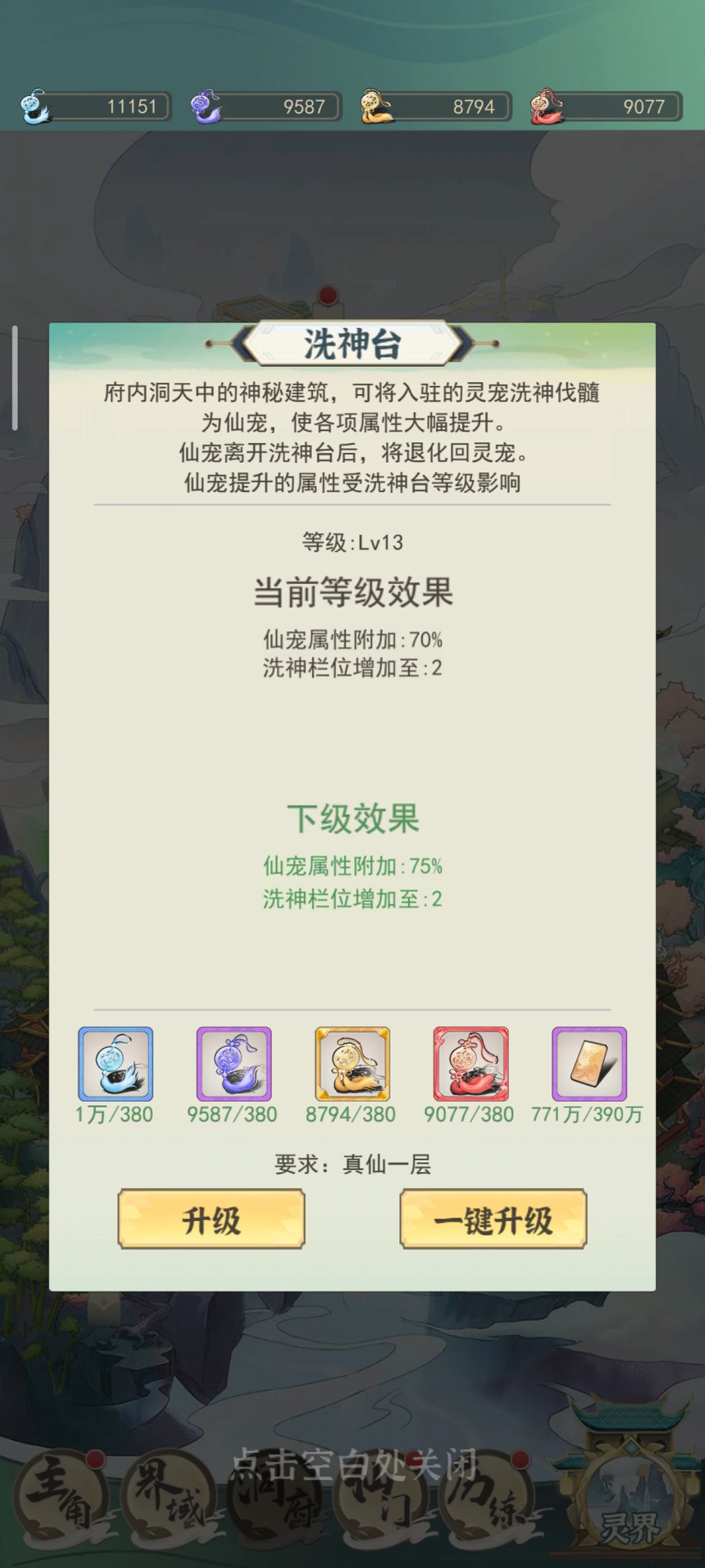 洗神台可以提升宠物的属性,提升效果随建筑等级增加,到一定等级还可以增加槽位,一个槽位可以提升一只宠物,所以肯定把自己出战的宠物放上去。