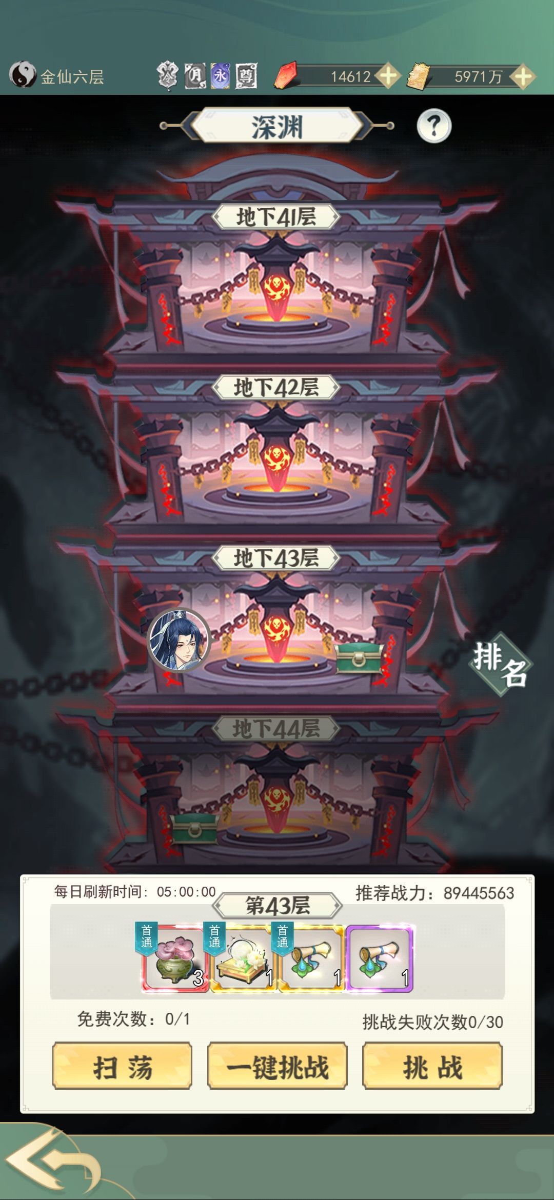 5.深渊:刚飞升灵界基本都打不过第一层,不要焦虑(氪佬除外),默默提升战力就好了,扫荡券等层数高了再用,性价比最大化!