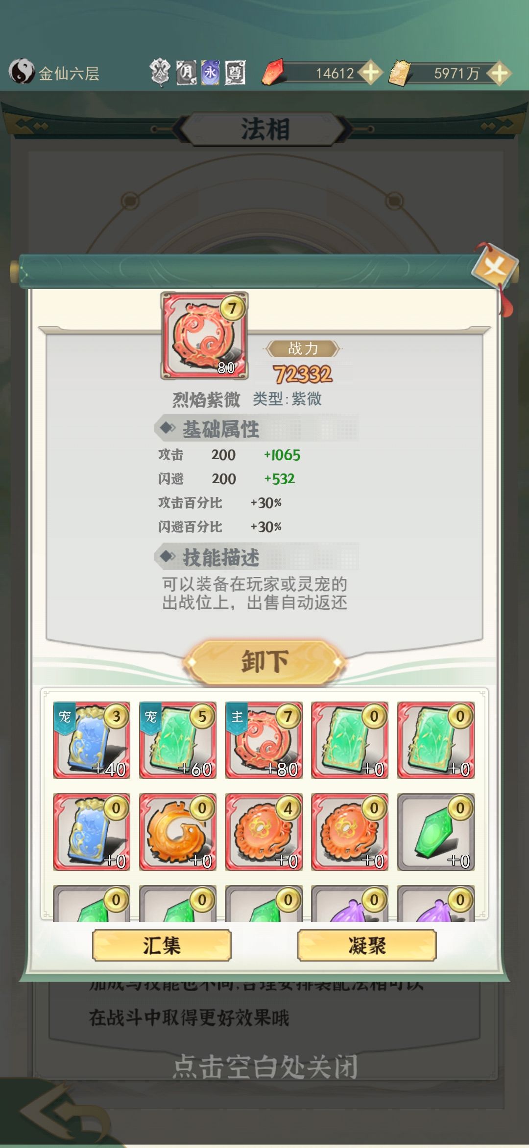 13.法相:人物选烈焰紫薇,加攻击加连击,宠物选重土,反弹伤害!