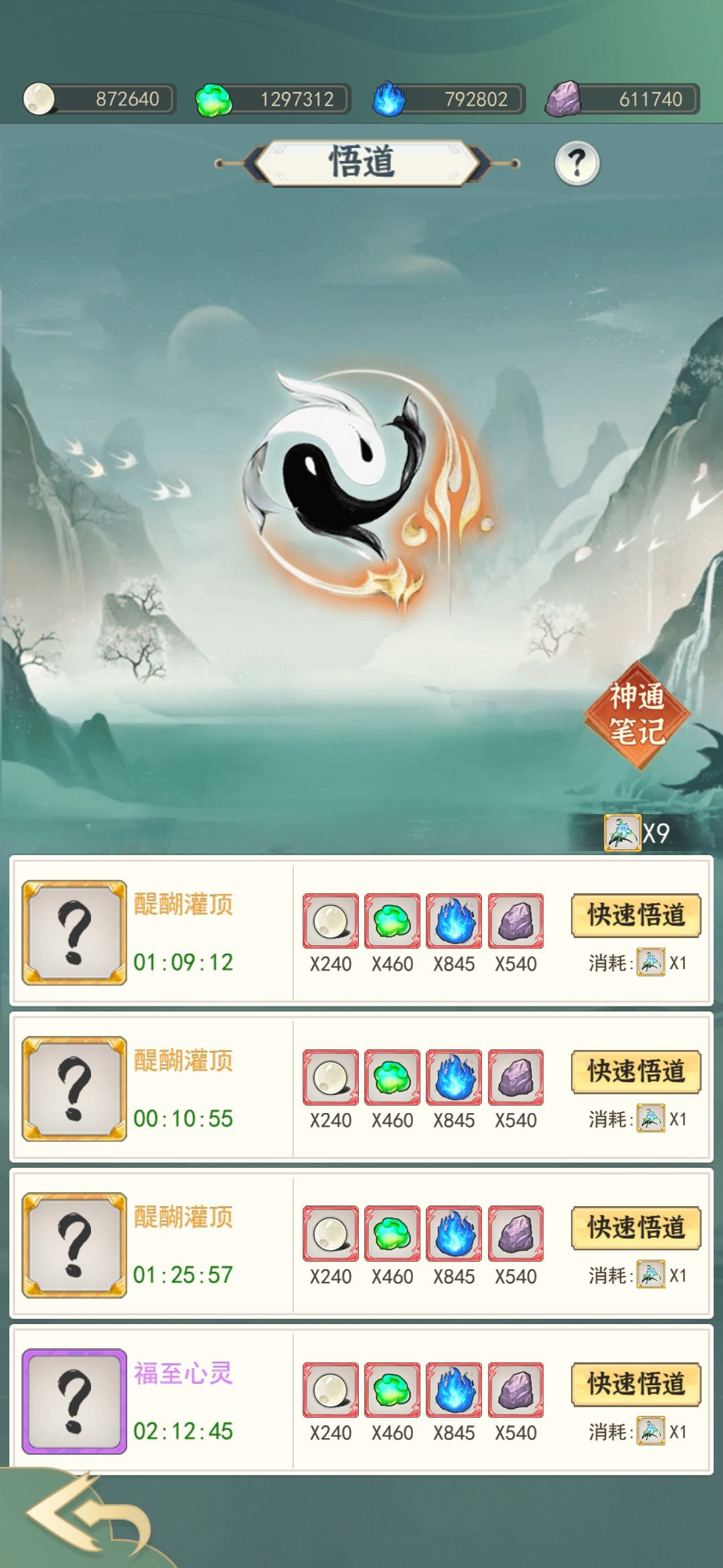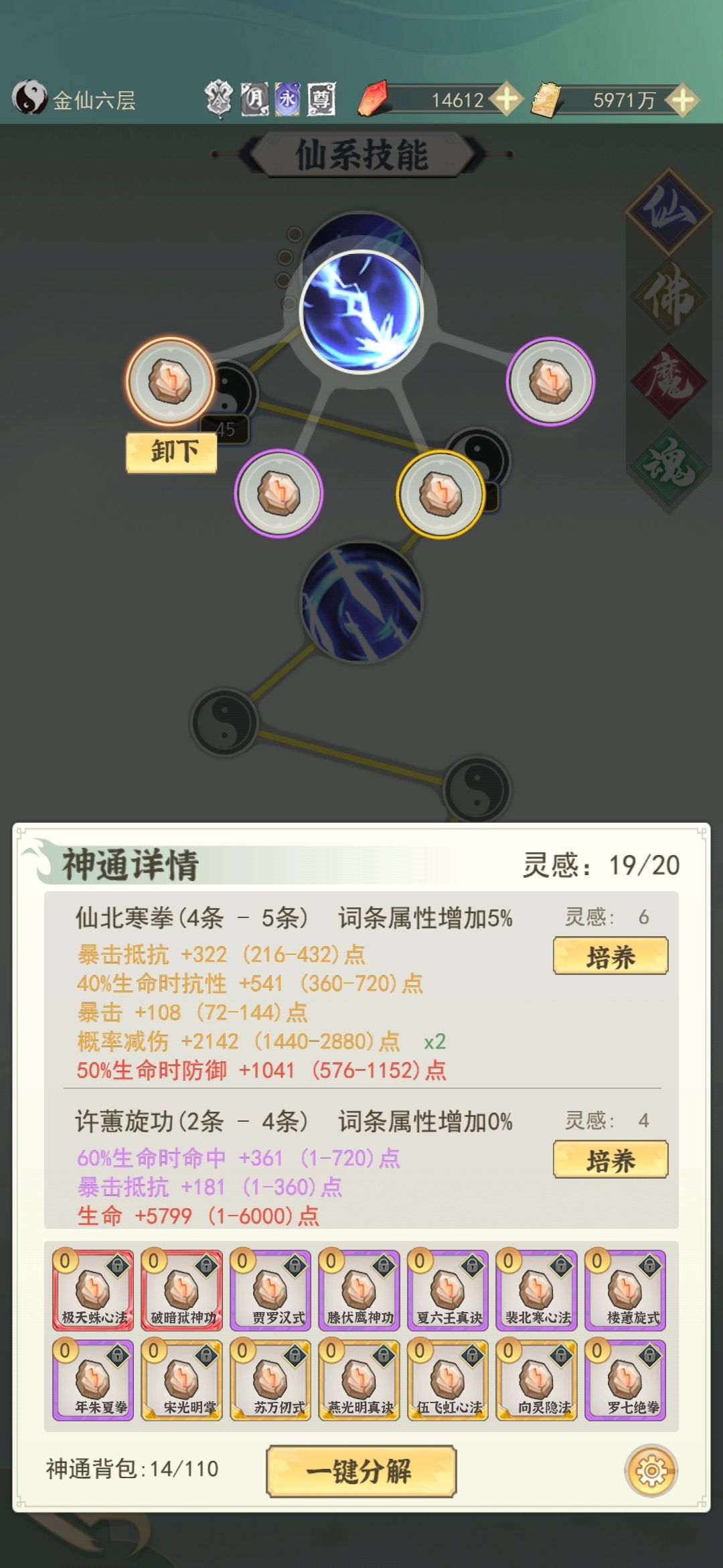 14.神通:神通要镶嵌在已佩戴的技能上才会生效!