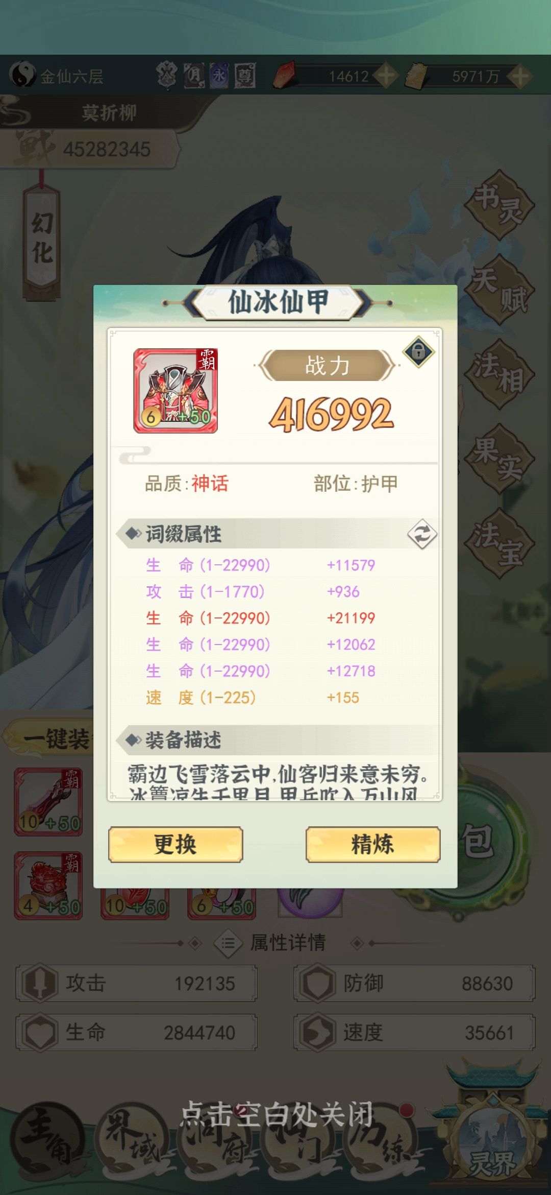 8.装备词条:速度>生命>攻击(破境也按这个顺序来),前期不用特意洗橙红词条,蓝色就可以用,升级很快