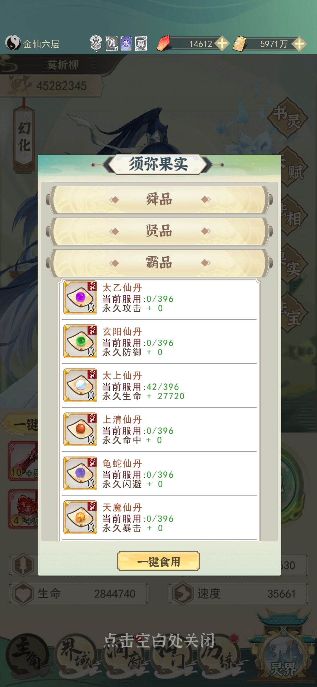 11.果子:人界的果子只靠坊市购买,不要自己炼,灵界不卖丹药了,自己炼生命>攻击,五行和闪避暴击命中不要炼(人间坊市五行精华拉满)