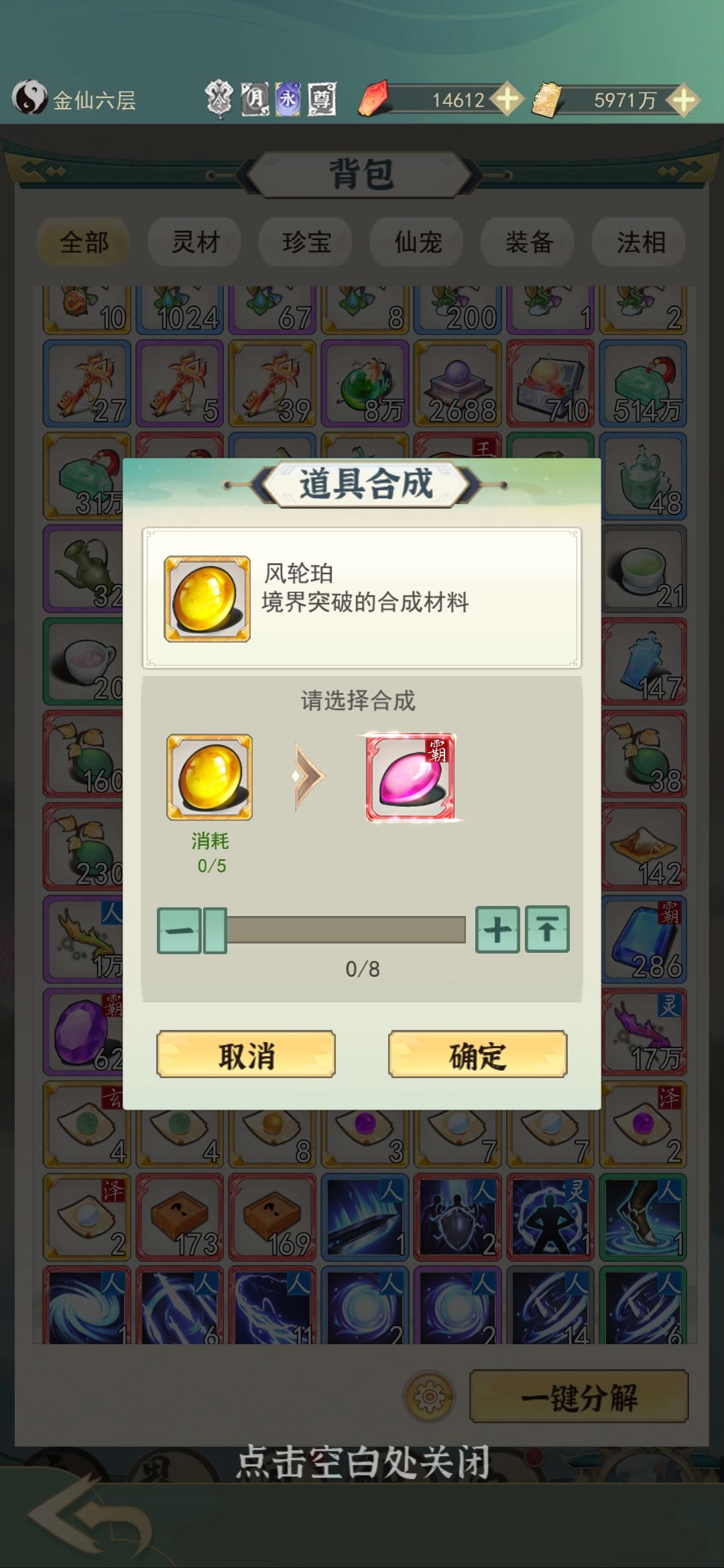 6.魔塔:掉落境界突破材料的,如果缺少橙色红色材料请去背包里从低等级开始合成,不要直接去坊市购买!不要购买!不要购买