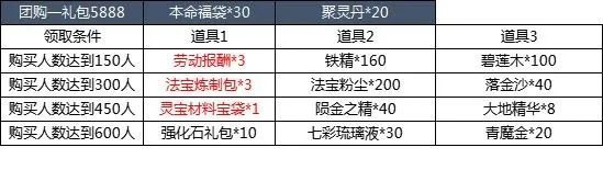 【活动简介】活动期间内,道友们可购买活动界面的团购商品。当购买团购商品的人数达到一定数量时,购买过该商品的道友们可以额外领取相应奖励。