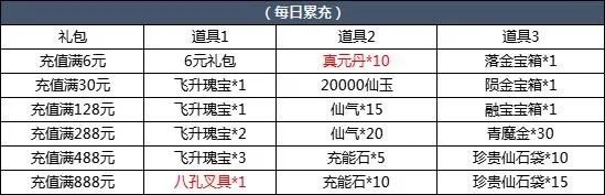 【活动简介】活动期间,每日累计充值达到指定金额即可领取相应好礼。