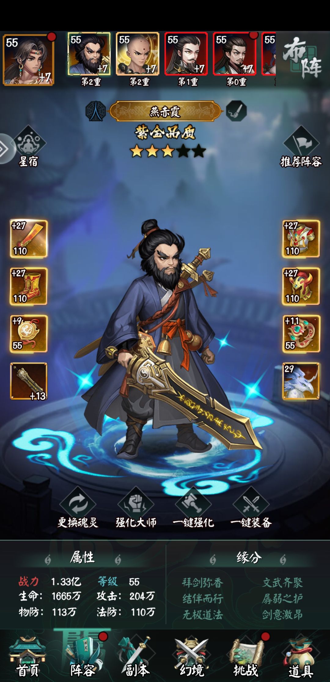 给燕赤霞选择的第一只紫金是星辰鹰首兽(怒攻后全体少量伤害并且概率我方三人回血),因为我的考虑是人族的紫金3依旧是偏辅助性质的,怒攻增加两回合全体回血,加上法海的攻击回血,燕赤霞和刘伯温自带的吸血回血,故暂时打算舍弃掉宁采臣这个奶妈,所以选择一个回血的紫金宠物强化一下回血部分(其实只是先后问题,紫金宠物能白嫖到)。