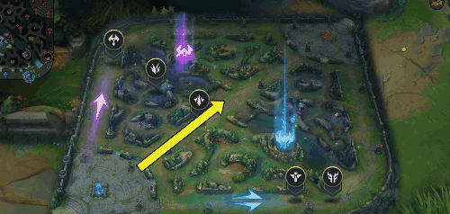 如果没发现敌方打野,这时也没刷河蟹,那么他一定在打蓝半区,在靠近敌人蓝半区的草丛插眼,就能让敌方打野束手无策。