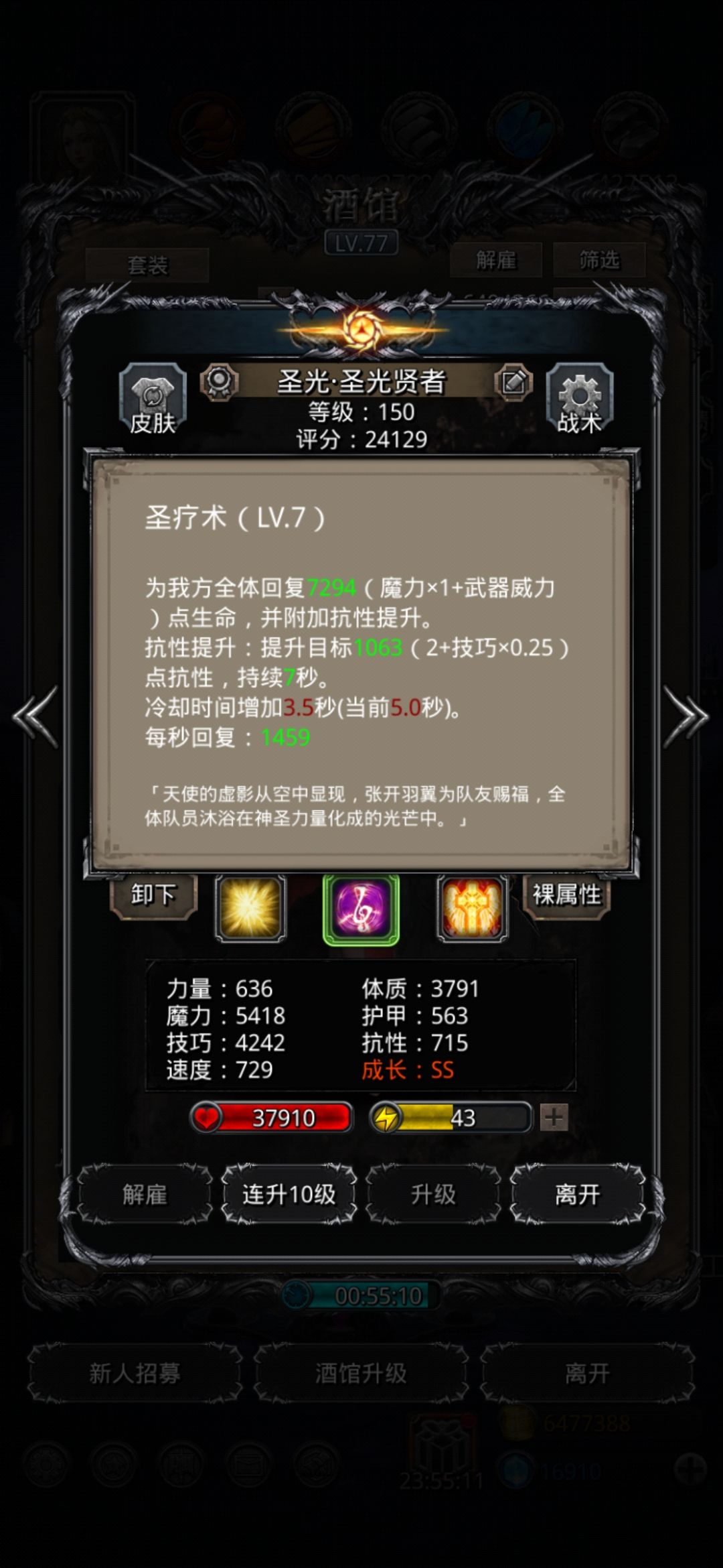技能设置跟wiki差不多,试了好几种,最后无脑挂机,看豪哥脸色,属性仅供参考。